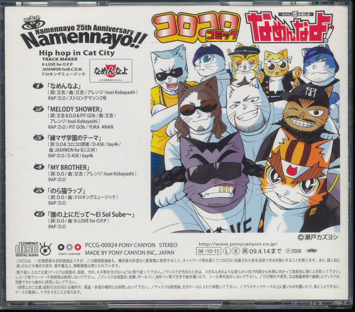 This art piece was drawn by Seto Kazuyoshi for use in this album. It includes a few of the main characters from the manga posing with anthropomorphic cat versions of the singers from the album, with the cat next to Matakichi being D.O. This artwork is really cool and helps unify the Namenayo brand while tying the album to the manga.